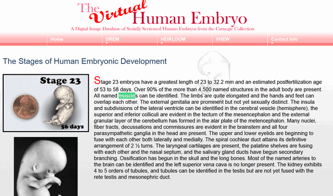 الولادة.. ولكن هناك بعض الملحدين شككوا في صحة المعلومات... ولذلك يا أحيتي دعوني أذهب معكم إلى أحد المواقع المتخصصة في علم الأجنة وهو http://www.ehd.org ونطالع ما وجده العلماء بالصور والتجربة العلمية التي لا تخطئ!